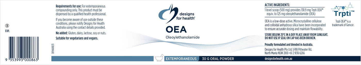 {"id":9327579988227,"title":"Designs For Health Australia OEA (Oleoylethanolamide)","handle":"designs-for-health-australia-oea","description":"\u003cp\u003eAustralia-first supply of Trpti OEA™, a next-generation oleoylethanolamide (OEA).\u003c\/p\u003e\n\u003cp\u003eOEA is an endogenous fatty acid amide, synthesised in the small intestine, and classified as a bioactive monounsaturated lipid mediator within the acylglycerol and N-acylethanolamine families.\u003c\/p\u003e\n\u003cp\u003eLipiSperse® delivery technology to address the bioavailability limitations of standard OEA.\u003c\/p\u003e\n\u003cp\u003eTrpti OEA™ research reference dose: 125 mg twice daily (250 mg per day)\u003c\/p\u003e\n\u003cp\u003eVegan Friendly\u003c\/p\u003e\n\u003c!-- TABS --\u003e\n\u003ch5\u003eProduct Information\u003c\/h5\u003e\n\u003cp\u003e\u003ca href=\"https:\/\/cdn.shopify.com\/s\/files\/1\/0273\/0367\/3992\/files\/DFH_AU_OEA_SEP-25.pdf?v=1772773892\" target=\"_blank\"\u003eOEA Product Information Sheet\u003c\/a\u003e\u003c\/p\u003e\n\u003c!-- \/TABS --\u003e","published_at":"2026-03-19T16:08:05+08:00","created_at":"2026-03-06T12:55:06+08:00","vendor":"Designs For Health Australia","type":"Practitioner","tags":["Brand_Designs for Health Australia","Energy \u0026 Metabolism \u0026 Blood Sugar Support","Foundational Health","Foundational Health - Vitmains \u0026 Minerals","Health Need_Energy \u0026 Metabolism Blood Sugar Support","Product Category_Practitioner","Product Type_Vitamins \u0026 Minerals","Vitamins \u0026 Minerals"],"price":27200,"price_min":27200,"price_max":27200,"available":true,"price_varies":false,"compare_at_price":null,"compare_at_price_min":0,"compare_at_price_max":0,"compare_at_price_varies":false,"variants":[{"id":47822042431747,"title":"Powder \/ 30 g","option1":"Powder","option2":"30 g","option3":null,"sku":null,"requires_shipping":false,"taxable":false,"featured_image":null,"available":true,"name":"Designs For Health Australia OEA (Oleoylethanolamide) - Powder \/ 30 g","public_title":"Powder \/ 30 g","options":["Powder","30 g"],"price":27200,"weight":180,"compare_at_price":null,"inventory_management":null,"barcode":"","requires_selling_plan":false,"selling_plan_allocations":[]}],"images":["\/\/inl.asia\/cdn\/shop\/files\/DFH_OEA_SEPT25.png?v=1772783818","\/\/inl.asia\/cdn\/shop\/files\/DFH_OEA_Label_Flatlay_RBAUG25.jpg?v=1772783818","\/\/inl.asia\/cdn\/shop\/files\/DFHAUOEAlabel.png?v=1772783818","\/\/inl.asia\/cdn\/shop\/files\/DFHAUOEAextra.png?v=1772783818"],"featured_image":"\/\/inl.asia\/cdn\/shop\/files\/DFH_OEA_SEPT25.png?v=1772783818","options":["Item Type","Size"],"media":[{"alt":null,"id":41044368326915,"position":1,"preview_image":{"aspect_ratio":1.0,"height":2000,"width":2000,"src":"\/\/inl.asia\/cdn\/shop\/files\/DFH_OEA_SEPT25.png?v=1772783818"},"aspect_ratio":1.0,"height":2000,"media_type":"image","src":"\/\/inl.asia\/cdn\/shop\/files\/DFH_OEA_SEPT25.png?v=1772783818","width":2000},{"alt":null,"id":41044368294147,"position":2,"preview_image":{"aspect_ratio":5.481,"height":453,"width":2483,"src":"\/\/inl.asia\/cdn\/shop\/files\/DFH_OEA_Label_Flatlay_RBAUG25.jpg?v=1772783818"},"aspect_ratio":5.481,"height":453,"media_type":"image","src":"\/\/inl.asia\/cdn\/shop\/files\/DFH_OEA_Label_Flatlay_RBAUG25.jpg?v=1772783818","width":2483},{"alt":null,"id":41043896271107,"position":3,"preview_image":{"aspect_ratio":3.436,"height":140,"width":481,"src":"\/\/inl.asia\/cdn\/shop\/files\/DFHAUOEAlabel.png?v=1772783818"},"aspect_ratio":3.436,"height":140,"media_type":"image","src":"\/\/inl.asia\/cdn\/shop\/files\/DFHAUOEAlabel.png?v=1772783818","width":481},{"alt":null,"id":41043896303875,"position":4,"preview_image":{"aspect_ratio":2.905,"height":116,"width":337,"src":"\/\/inl.asia\/cdn\/shop\/files\/DFHAUOEAextra.png?v=1772783818"},"aspect_ratio":2.905,"height":116,"media_type":"image","src":"\/\/inl.asia\/cdn\/shop\/files\/DFHAUOEAextra.png?v=1772783818","width":337}],"requires_selling_plan":false,"selling_plan_groups":[],"content":"\u003cp\u003eAustralia-first supply of Trpti OEA™, a next-generation oleoylethanolamide (OEA).\u003c\/p\u003e\n\u003cp\u003eOEA is an endogenous fatty acid amide, synthesised in the small intestine, and classified as a bioactive monounsaturated lipid mediator within the acylglycerol and N-acylethanolamine families.\u003c\/p\u003e\n\u003cp\u003eLipiSperse® delivery technology to address the bioavailability limitations of standard OEA.\u003c\/p\u003e\n\u003cp\u003eTrpti OEA™ research reference dose: 125 mg twice daily (250 mg per day)\u003c\/p\u003e\n\u003cp\u003eVegan Friendly\u003c\/p\u003e\n\u003c!-- TABS --\u003e\n\u003ch5\u003eProduct Information\u003c\/h5\u003e\n\u003cp\u003e\u003ca href=\"https:\/\/cdn.shopify.com\/s\/files\/1\/0273\/0367\/3992\/files\/DFH_AU_OEA_SEP-25.pdf?v=1772773892\" target=\"_blank\"\u003eOEA Product Information Sheet\u003c\/a\u003e\u003c\/p\u003e\n\u003c!-- \/TABS --\u003e"}