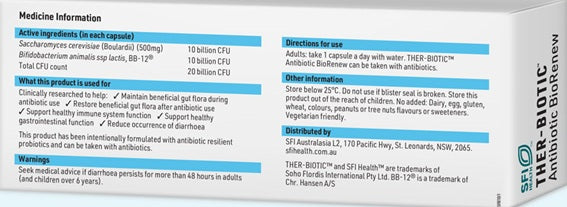{"id":9291360076035,"title":"SFI Ther-Biotic Antibiotic BioRenew","handle":"sfi-ther-biotic-antibiotic-biorenew","description":"\u003ch2\u003eFor use with antibiotics to restore healthy gut flora\u003c\/h2\u003e\n\u003ch3\u003eScientifically developed probiotic formula to restore healthy gut flora during and after antibiotic use.\u003c\/h3\u003e\n\u003cp\u003eAntibiotic use can significantly disrupt the balance of beneficial bacteria in the gastrointestinal tract, disturbing the intestinal mucosa and reducing microbial diversity. This can lead to dysbiosis and antibiotic-associated diarrhoea.\u003c\/p\u003e\n\u003cp\u003eSupporting gut flora during antibiotic use helps to keep our gut microbiome in good health. The beneficial bacteria in the gut play vital roles in digestive function by supporting the breakdown of food in the gut, assisting with bowel health.\u003c\/p\u003e\n\u003cp\u003eTHER-BIOTIC™ Antibiotic BioRenew is an evidence-based probiotic formula that helps to restore intestinal flora during the use of antibiotics. It contains specific beneficial probiotic strains that have been clinically researched to support the gut while taking antibiotics and maintain healthy immune function.\u003c\/p\u003e\n\u003cp\u003eTHER-BIOTIC™ Antibiotic BioRenew has been shown to support intestinal health and maintain gut flora diversity both during and after a course of antibiotics. These strains are clinically researched to reduce the impact of antibiotics on beneficial gut flora and lower the likelihood of antibiotic-associated diarrhoea.\u003cstrong\u003e\u003c\/strong\u003e\u003c\/p\u003e\n\u003cp\u003e \u003c\/p\u003e","published_at":"2026-02-05T11:50:14+08:00","created_at":"2026-02-05T11:40:21+08:00","vendor":"SFI Health","type":"Practitioner","tags":["Brand_Klaire Labs","Gut Health - Probiotics","Immune Health","Immune Health Allergies \u0026 Inflammation Support","Probiotics","Product Category_Practitioner","Product Type_Gut Health","Product Type_Probiotics"],"price":22200,"price_min":22200,"price_max":22200,"available":true,"price_varies":false,"compare_at_price":null,"compare_at_price_min":0,"compare_at_price_max":0,"compare_at_price_varies":false,"variants":[{"id":47712780026115,"title":"Capsules \/ 15","option1":"Capsules","option2":"15","option3":null,"sku":"19000470","requires_shipping":false,"taxable":false,"featured_image":null,"available":true,"name":"SFI Ther-Biotic Antibiotic BioRenew - Capsules \/ 15","public_title":"Capsules \/ 15","options":["Capsules","15"],"price":22200,"weight":56,"compare_at_price":null,"inventory_management":null,"barcode":"","requires_selling_plan":false,"selling_plan_allocations":[]}],"images":["\/\/inl.asia\/cdn\/shop\/files\/SFITher-BioticAntibioticbox.jpg?v=1770263404","\/\/inl.asia\/cdn\/shop\/files\/SFITher-BioticAntibioticback.jpg?v=1770263404"],"featured_image":"\/\/inl.asia\/cdn\/shop\/files\/SFITher-BioticAntibioticbox.jpg?v=1770263404","options":["Item Type","Quantity"],"media":[{"alt":null,"id":40710721437955,"position":1,"preview_image":{"aspect_ratio":1.0,"height":700,"width":700,"src":"\/\/inl.asia\/cdn\/shop\/files\/SFITher-BioticAntibioticbox.jpg?v=1770263404"},"aspect_ratio":1.0,"height":700,"media_type":"image","src":"\/\/inl.asia\/cdn\/shop\/files\/SFITher-BioticAntibioticbox.jpg?v=1770263404","width":700},{"alt":null,"id":40710721405187,"position":2,"preview_image":{"aspect_ratio":2.739,"height":207,"width":567,"src":"\/\/inl.asia\/cdn\/shop\/files\/SFITher-BioticAntibioticback.jpg?v=1770263404"},"aspect_ratio":2.739,"height":207,"media_type":"image","src":"\/\/inl.asia\/cdn\/shop\/files\/SFITher-BioticAntibioticback.jpg?v=1770263404","width":567}],"requires_selling_plan":false,"selling_plan_groups":[],"content":"\u003ch2\u003eFor use with antibiotics to restore healthy gut flora\u003c\/h2\u003e\n\u003ch3\u003eScientifically developed probiotic formula to restore healthy gut flora during and after antibiotic use.\u003c\/h3\u003e\n\u003cp\u003eAntibiotic use can significantly disrupt the balance of beneficial bacteria in the gastrointestinal tract, disturbing the intestinal mucosa and reducing microbial diversity. This can lead to dysbiosis and antibiotic-associated diarrhoea.\u003c\/p\u003e\n\u003cp\u003eSupporting gut flora during antibiotic use helps to keep our gut microbiome in good health. The beneficial bacteria in the gut play vital roles in digestive function by supporting the breakdown of food in the gut, assisting with bowel health.\u003c\/p\u003e\n\u003cp\u003eTHER-BIOTIC™ Antibiotic BioRenew is an evidence-based probiotic formula that helps to restore intestinal flora during the use of antibiotics. It contains specific beneficial probiotic strains that have been clinically researched to support the gut while taking antibiotics and maintain healthy immune function.\u003c\/p\u003e\n\u003cp\u003eTHER-BIOTIC™ Antibiotic BioRenew has been shown to support intestinal health and maintain gut flora diversity both during and after a course of antibiotics. These strains are clinically researched to reduce the impact of antibiotics on beneficial gut flora and lower the likelihood of antibiotic-associated diarrhoea.\u003cstrong\u003e\u003c\/strong\u003e\u003c\/p\u003e\n\u003cp\u003e \u003c\/p\u003e"}