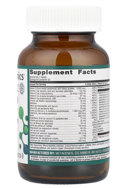 Comprehensive multivitamin that supports cellular health, overall wellness, and healthy aging, with methylfolate (800 mcg), vitamins A‑K, and chelated minerals - including gentle iron bisglycinate (18 mg) - to support daily wellness and healthy energy metabolism.