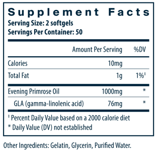 Evening Primrose Oil is a source of gamma linoleic acid (GLA), an omega-6 fatty acid that supports premenstrual wellness and healthy inflammatory responses.